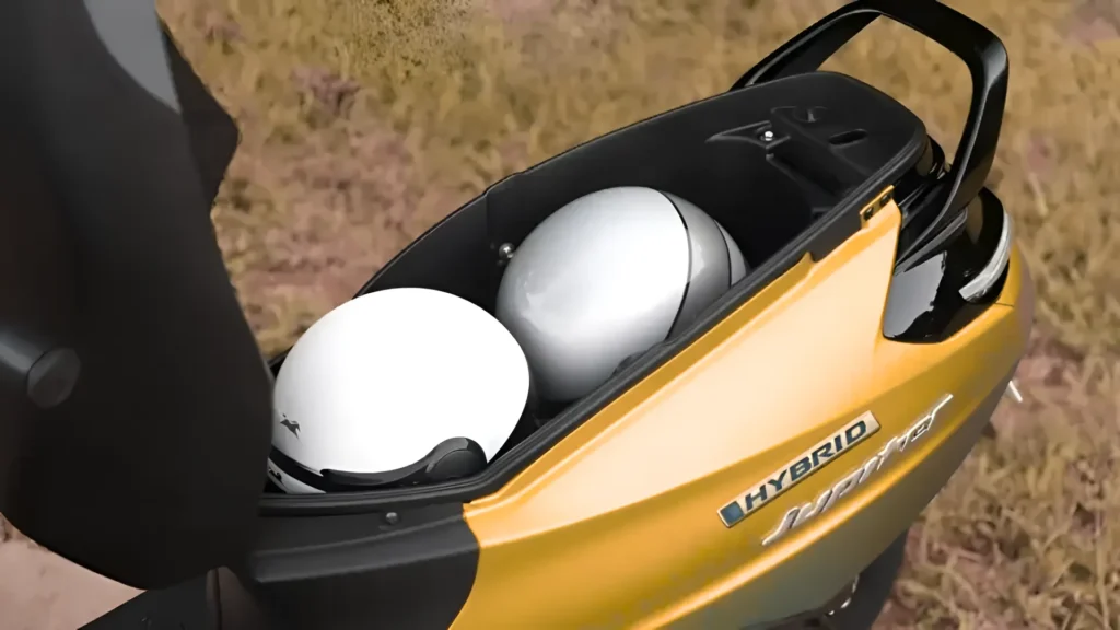 Jupiter Hybrid का डिज़ाइन पूरी तरह से मॉडर्न और एग्रेसिव है इसमें आपको पहले के मुकाबले शार्प LED हेडलाइट, एयरोडायनामिक बॉडी पैनल और प्रीमियम एलॉय व्हील्स दिए गए हैं। स्कूटर का सीट डिजाइन आरामदायक है और पीछे की साइड में डुअल पिलियन सीट उपलब्ध है। इसके डिजिटल इंस्ट्रूमेंट क्लस्टर और स्टाइलिश रियर LED टेललाइट इसे प्रीमियम लुक देते हैं।